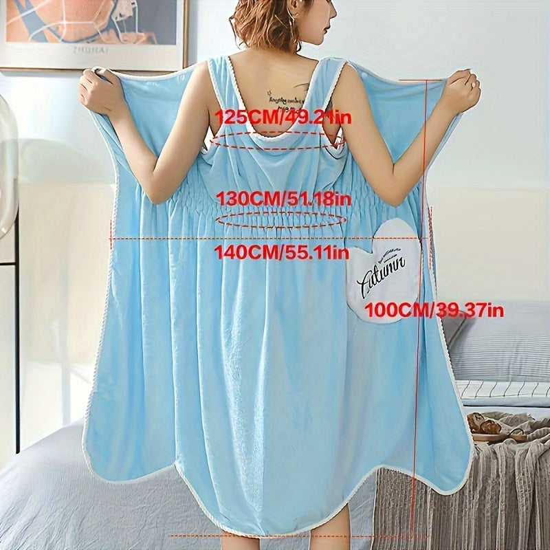 Adult Coral Fleece Wearable Bath Towel with Heart Pocket and Elastic Waistband Absorbent Non-Shedding