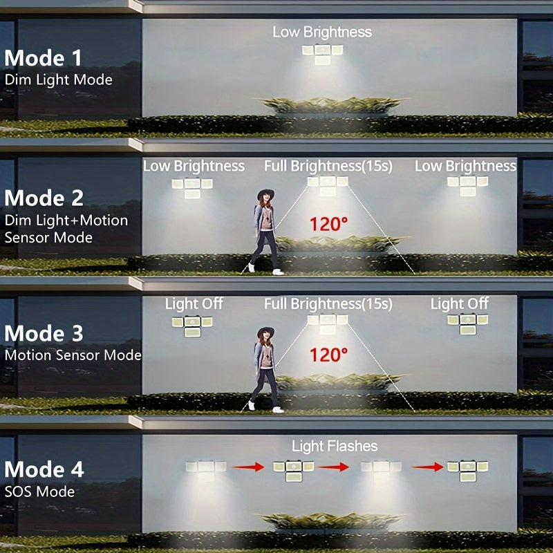 Solar-Powered Motion Sensor Light with Remote Control 288 LED 4-Head Security Floodlight 300° Wide Angle for Garden Yard Pathway Garage Street