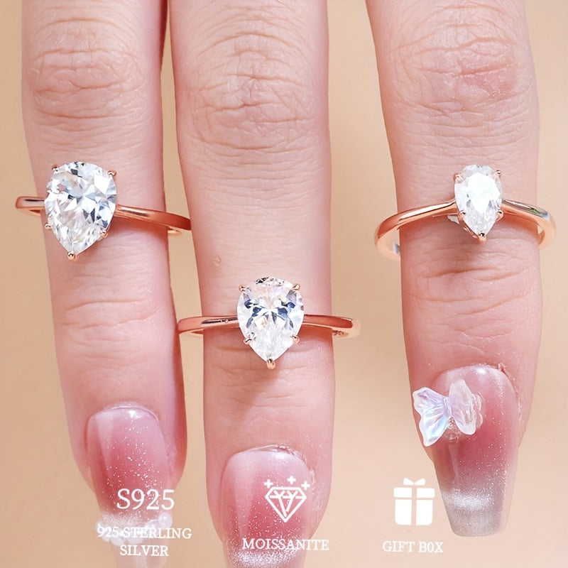 Hypoallergenic Moissanite Engagement Ring Sterling Silver Pear-Shaped 3ct 2ct 1ct