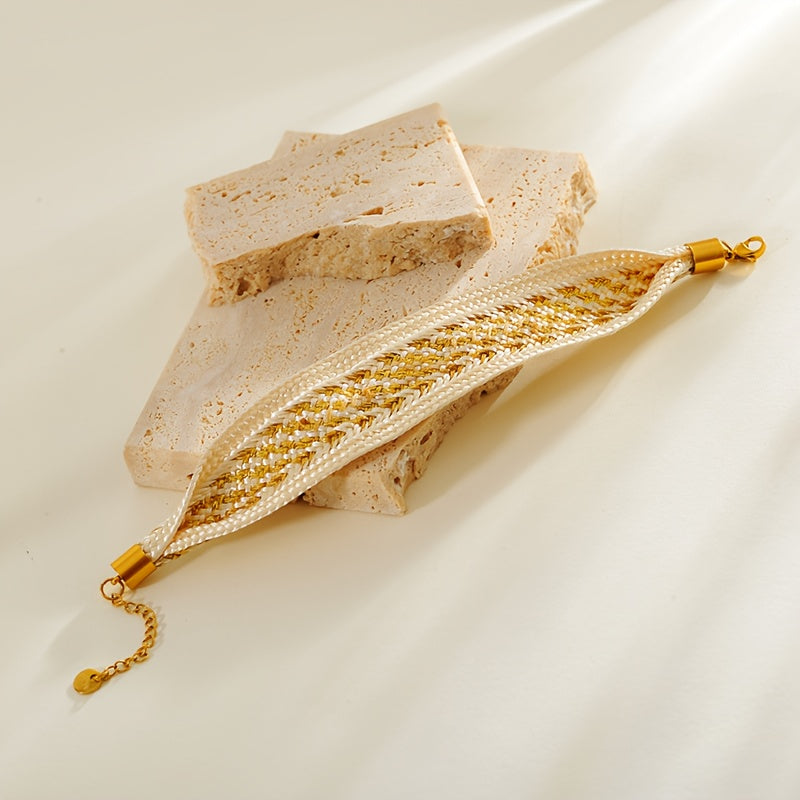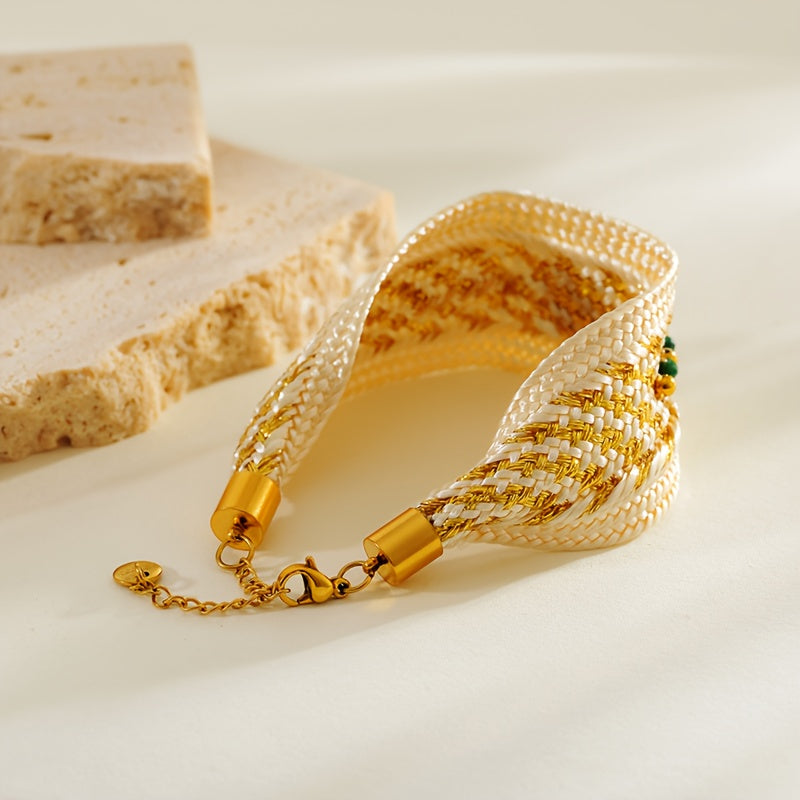 Gold Plated Titanium Steel Bracelet with Turquoise Bohemian Ethnic Woven Design for Women