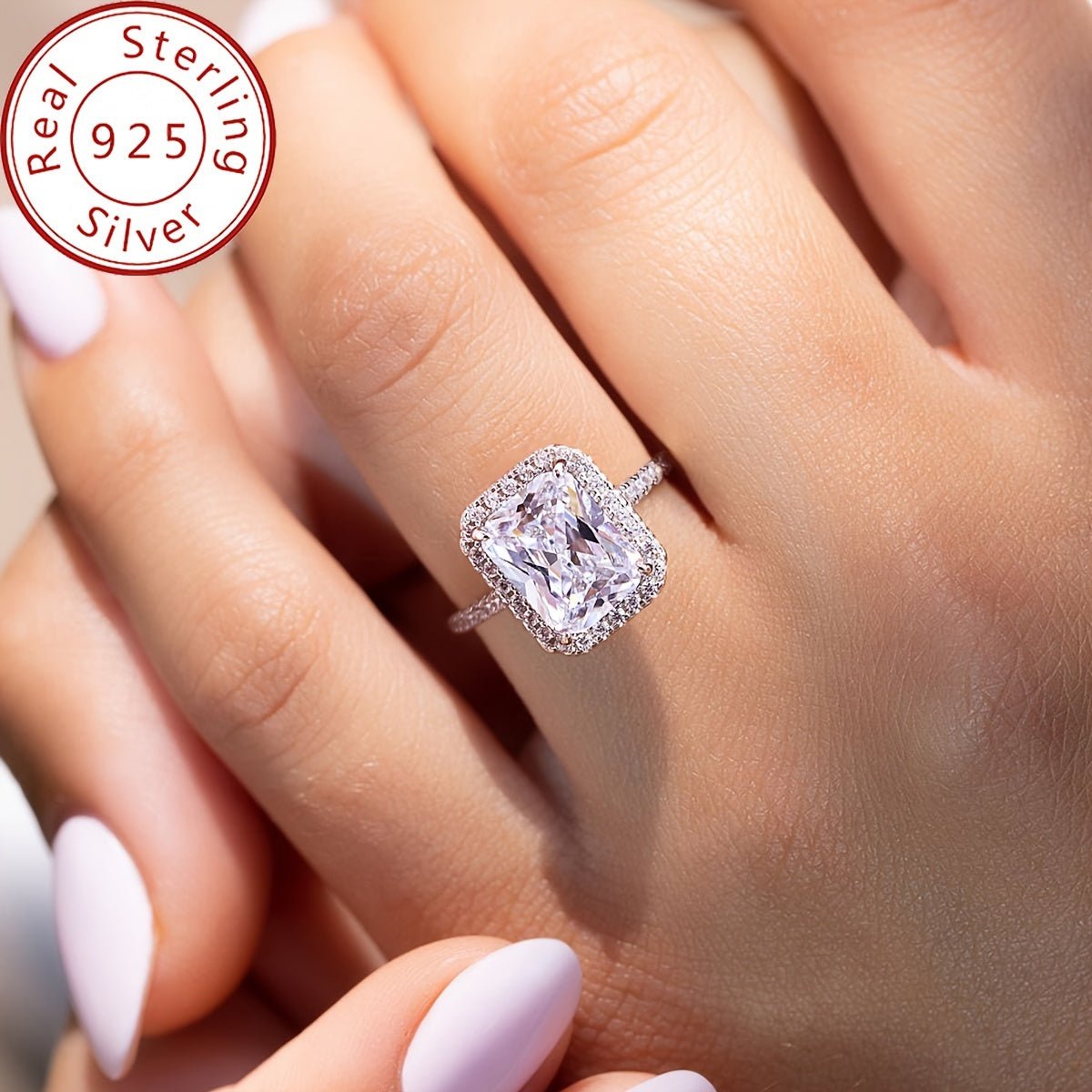 Sterling Silver Engagement Ring with Rectangular Halo and Cubic Zirconia