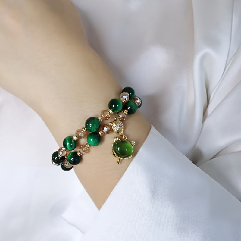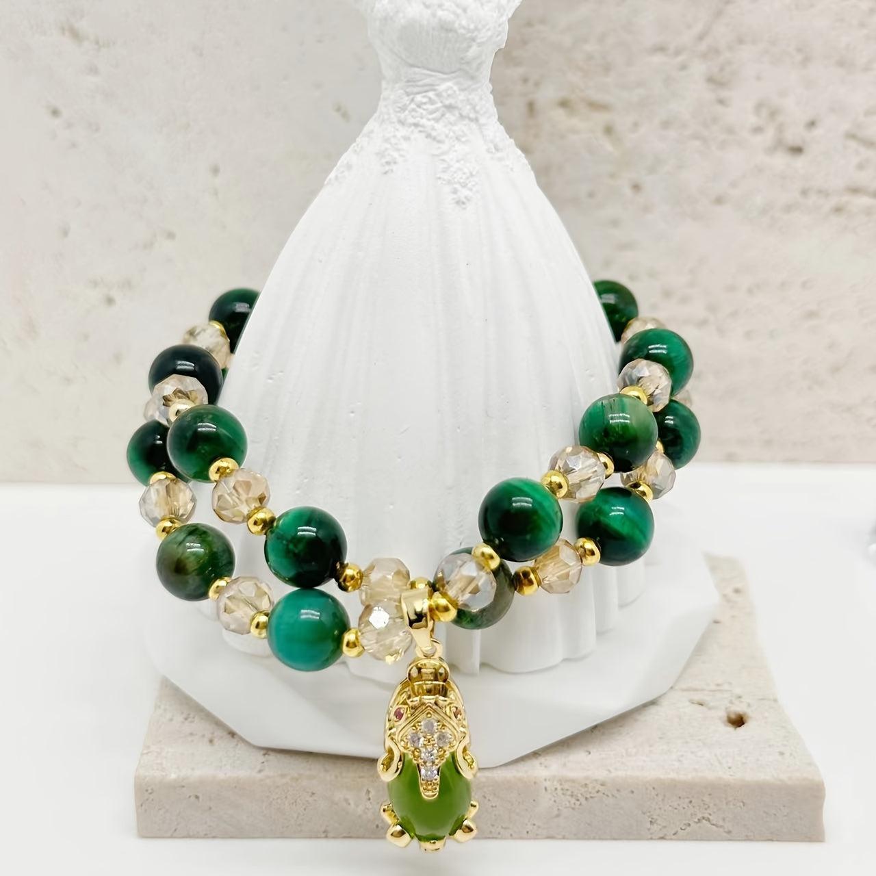 Tiger Eye Stone Pixiu Charm Bracelet Natural Beads for Women and Men Single or Double Chain