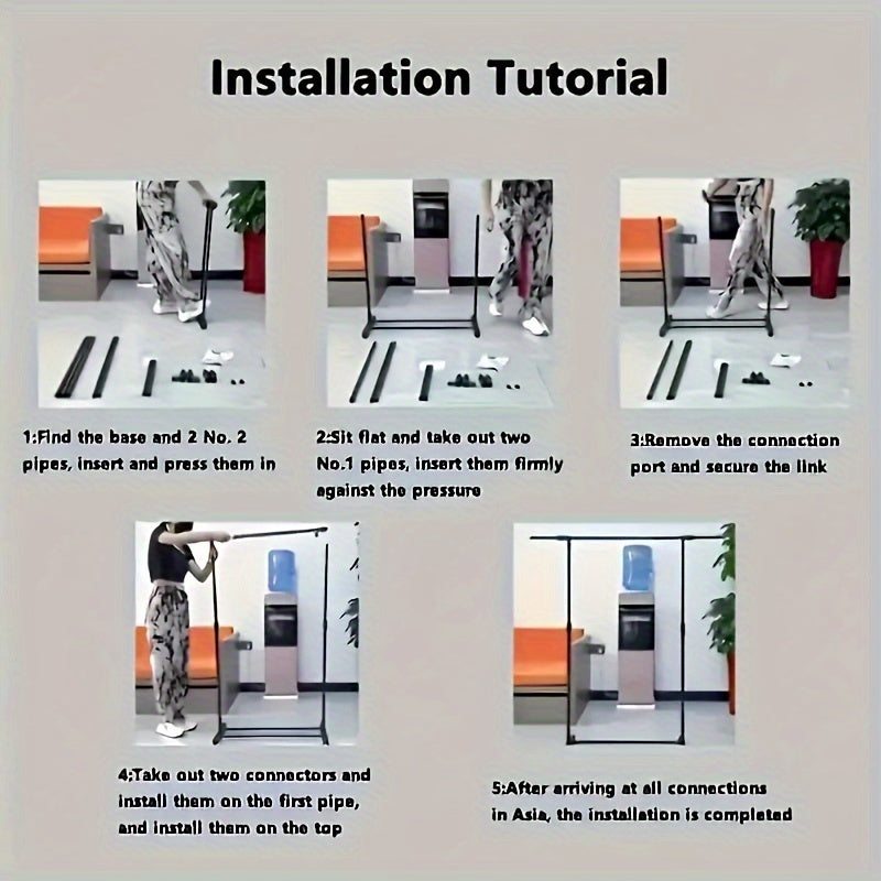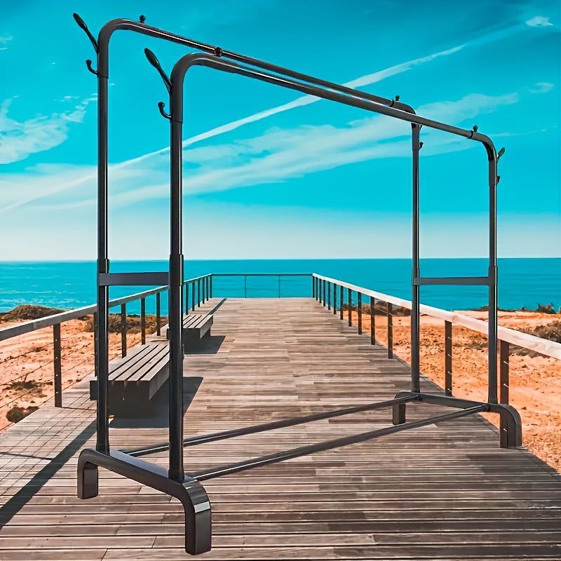 Metal Clothes Rack with Shelf and Hooks for Bedroom and Balcony Storage