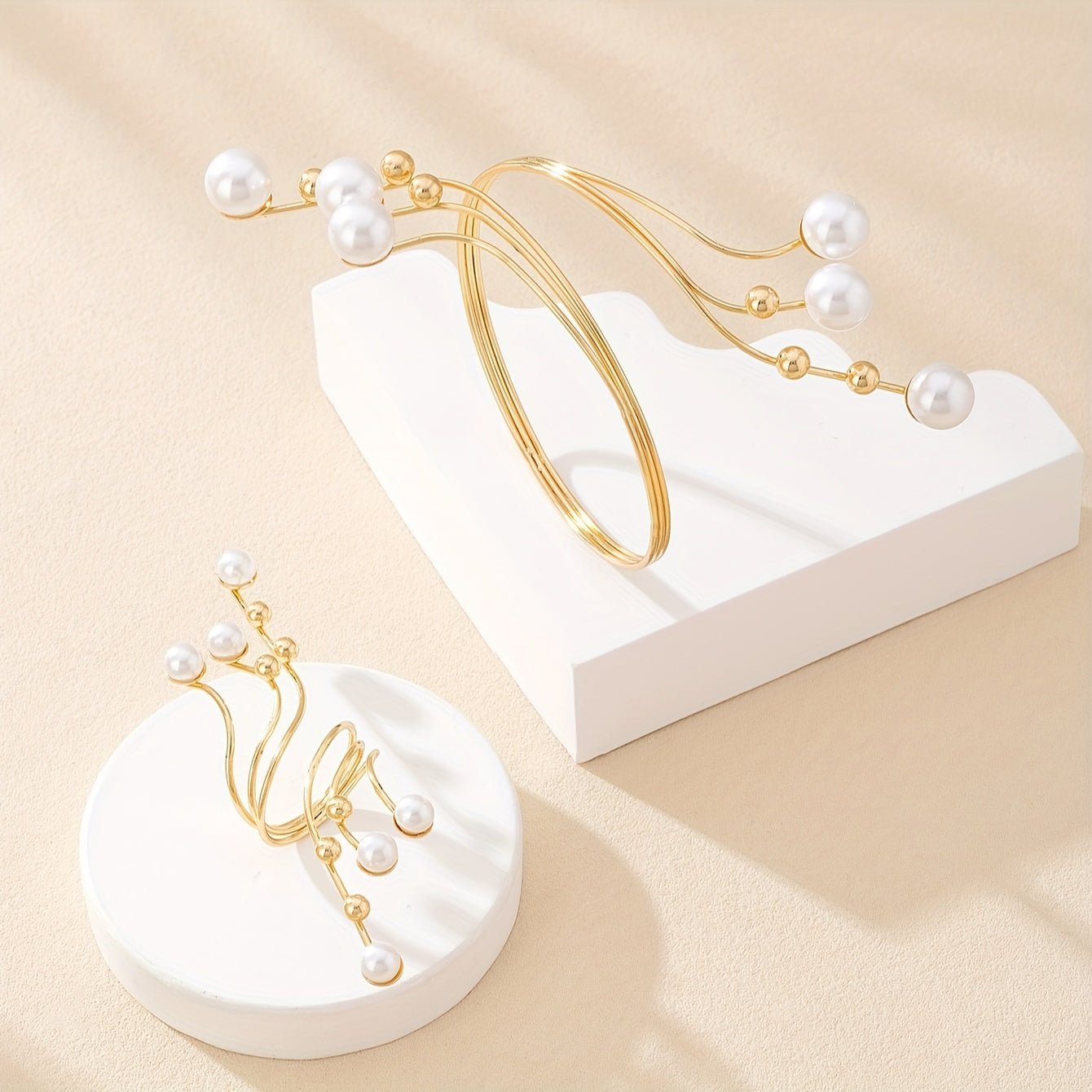 Jewelry Set with Pearl Bracelet and Ring for Festivals and Events