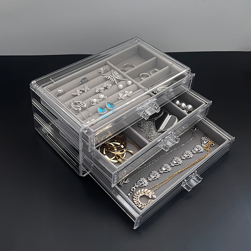 Jewelry Organizer Storage Box with Dustproof and Anti-Oxidation Clear Drawer for Rings Earrings Necklaces