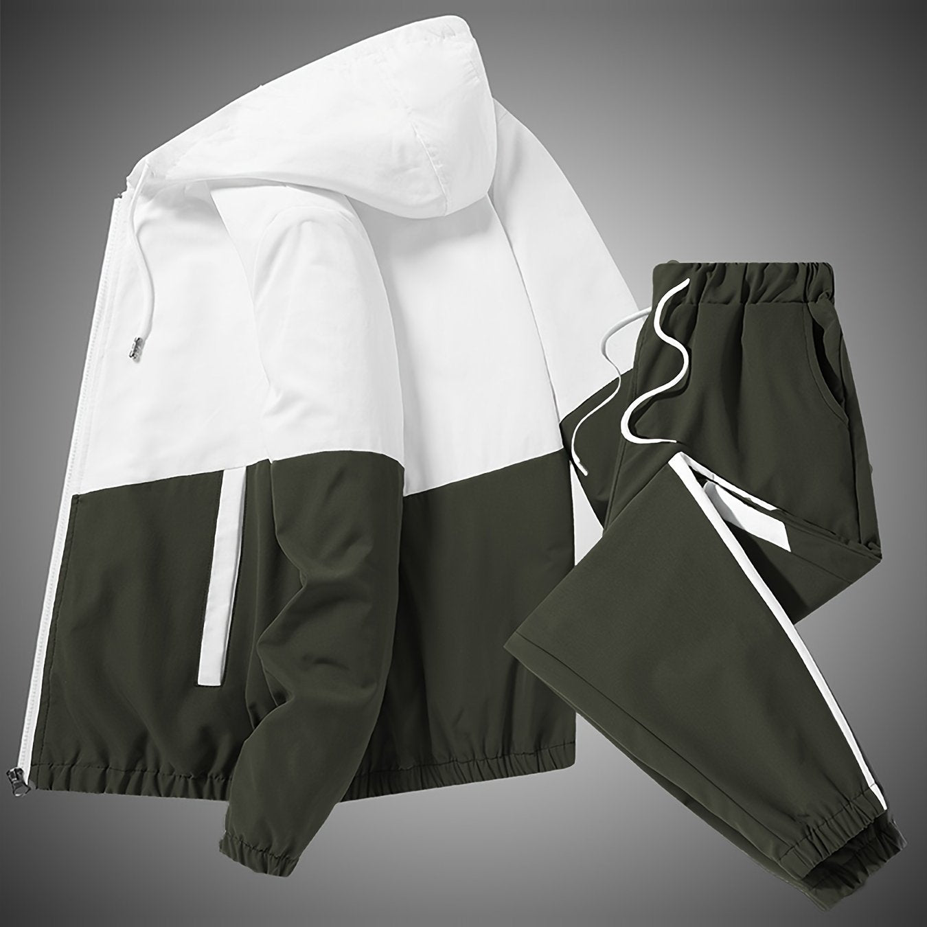 Men's Polyester Sportswear Set Hooded Jacket and Long Pants Solid Color Loose Fit Spring Fall