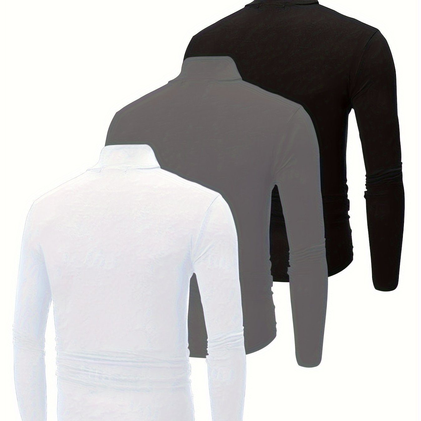 Adult Long Sleeve Mock Neck T-Shirt Polyester Blend Solid Color Casual