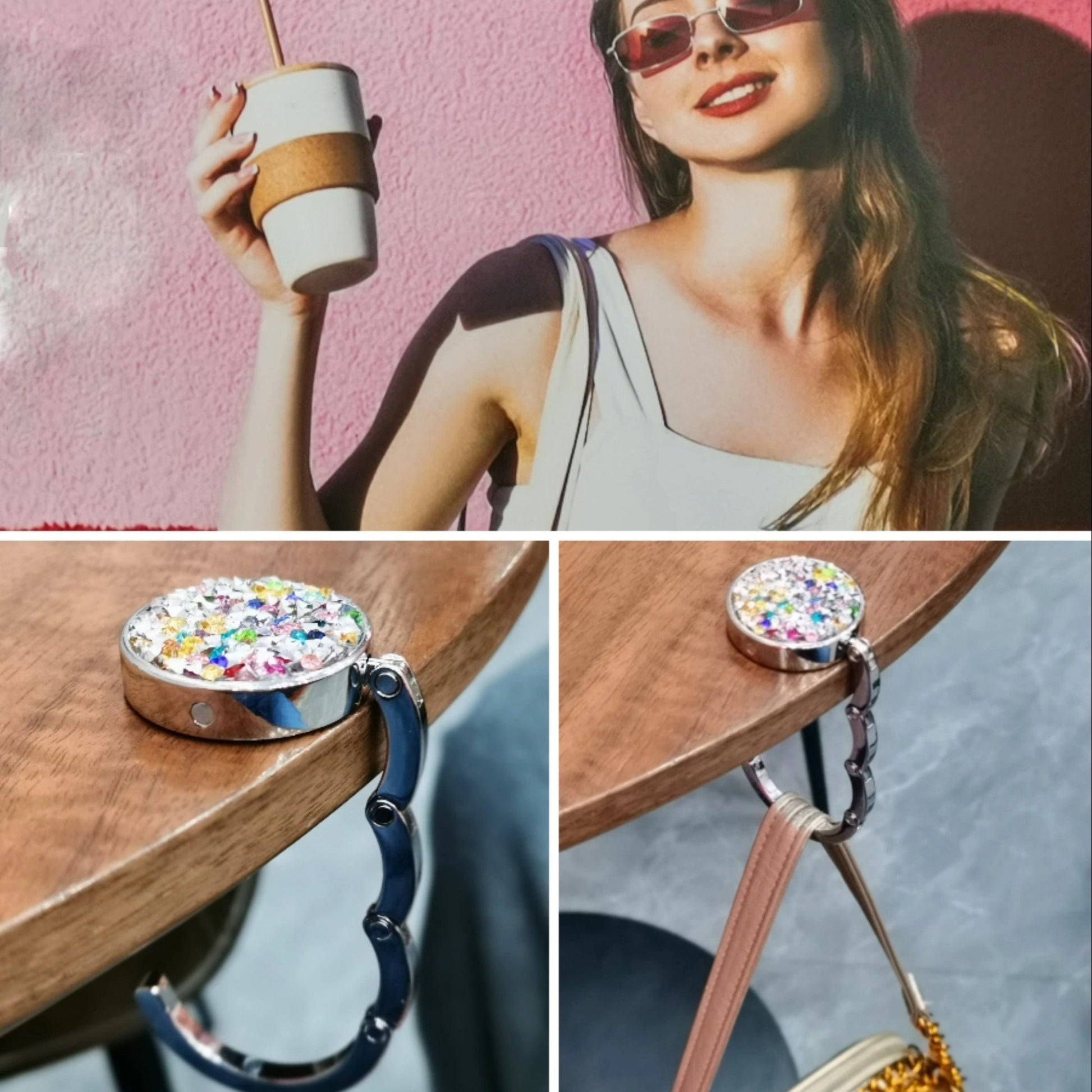 Elegant Rhinestone Handbag with Foldable Design and Portable Hook for Parties and Work