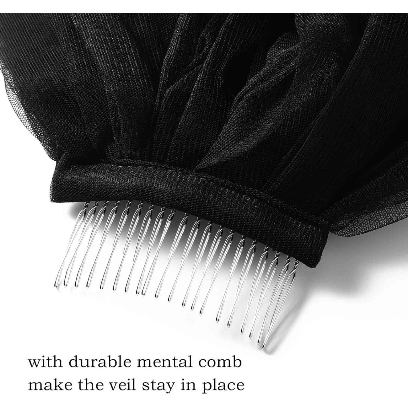 Black Lace Bridal Veil with Comb Fingertip and Long Length for Weddings and Occasions