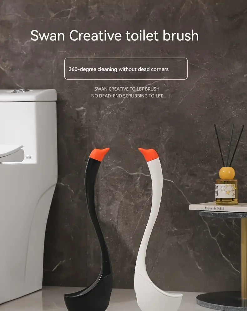 Swan-Shaped Toilet Brush with Angled Bristles Floor Mount No-Drill Long Handle Medium Firm
