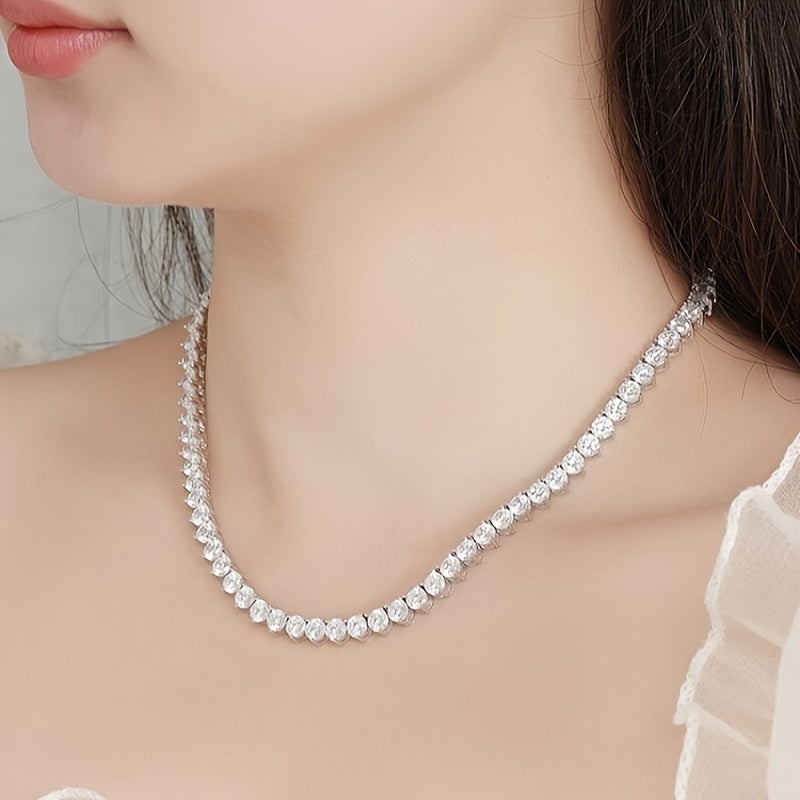 Sterling Silver Moissanite Tennis Necklace 5mm Claw Design for Women