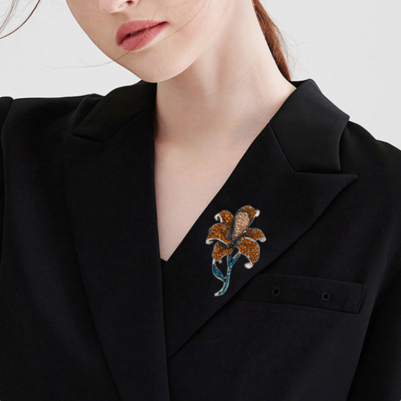 Vintage Lily Flower Rhinestone Brooch Elegant Jewelry for Weddings Formal Wear