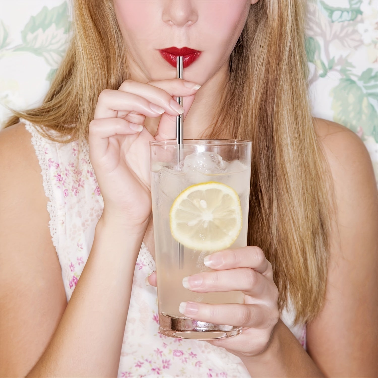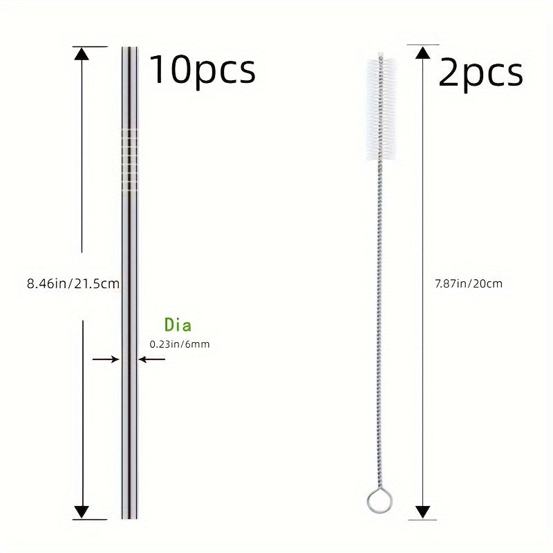 10 Reusable Stainless Steel Drinking Straws 21.59cm with Cleaning Brushes