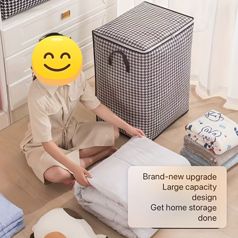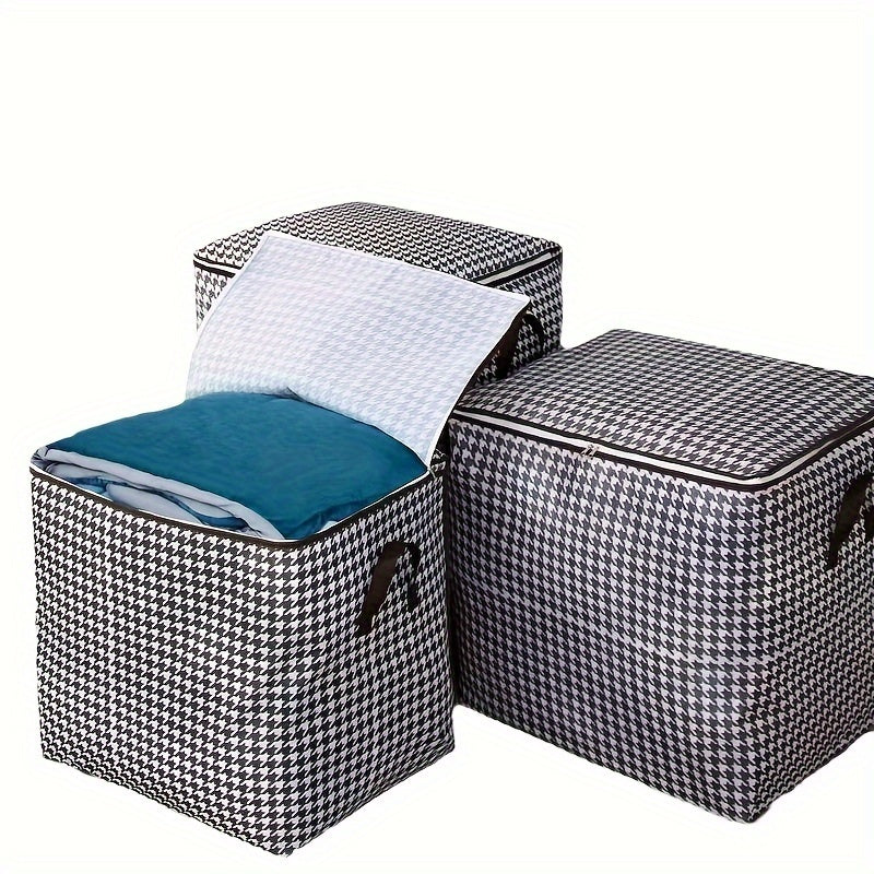 Houndstooth Fabric Storage Box for Clothes and Quilts Dustproof Moistureproof with Handles