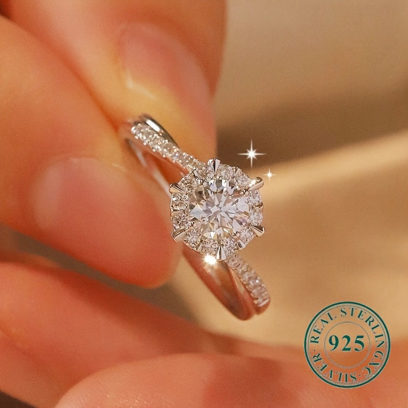 Sterling Silver Twisted Ring with Moissanite Diamond Inlay for Women 0.5ct 1ct 2ct