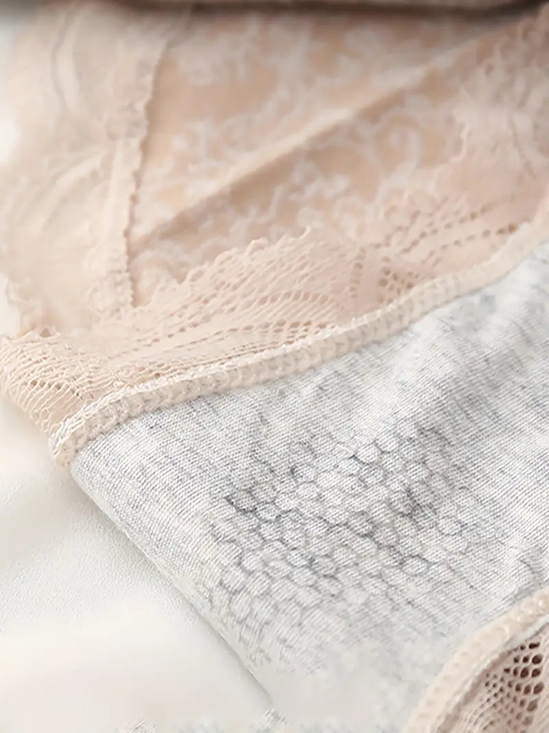 Women's Lace Trim Briefs Mid-Rise Solid Color Polyamide Elastane