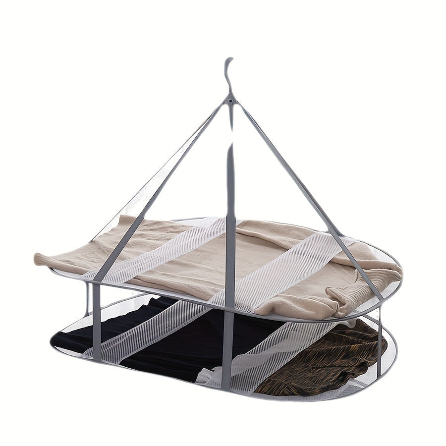 Grey Three-Story Clothes Dryer with Mesh Netting for Large Items and Wind Protection