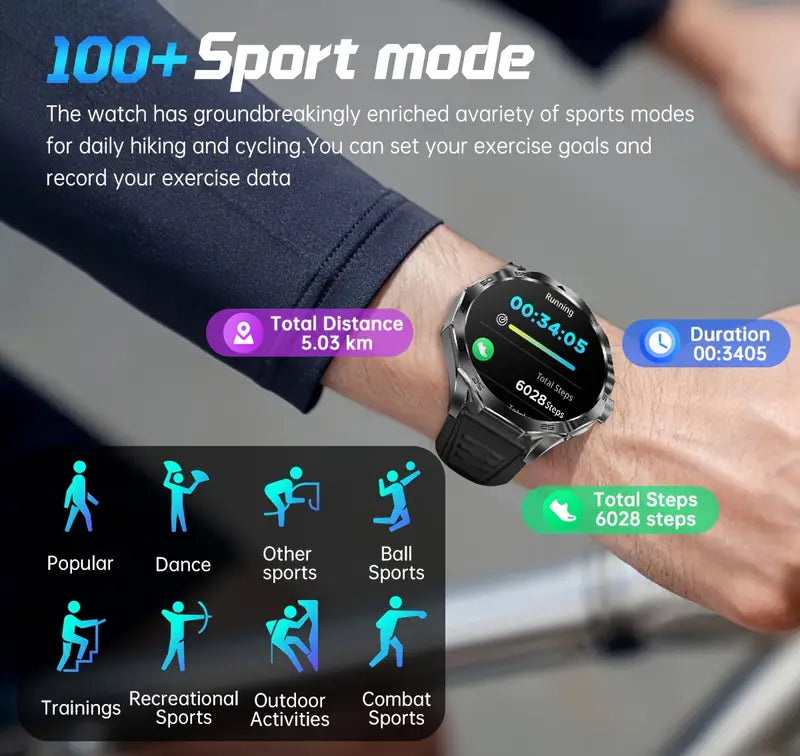 Zinc Alloy Smart Watch 4.7cm Screen 100+ Sports Modes AI Voice Control Wireless Rechargeable Battery