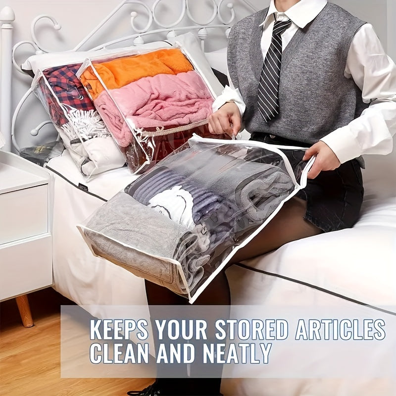 6-Pack Transparent Zippered Storage Bags for Organizing Clothes Bedding and Household Items