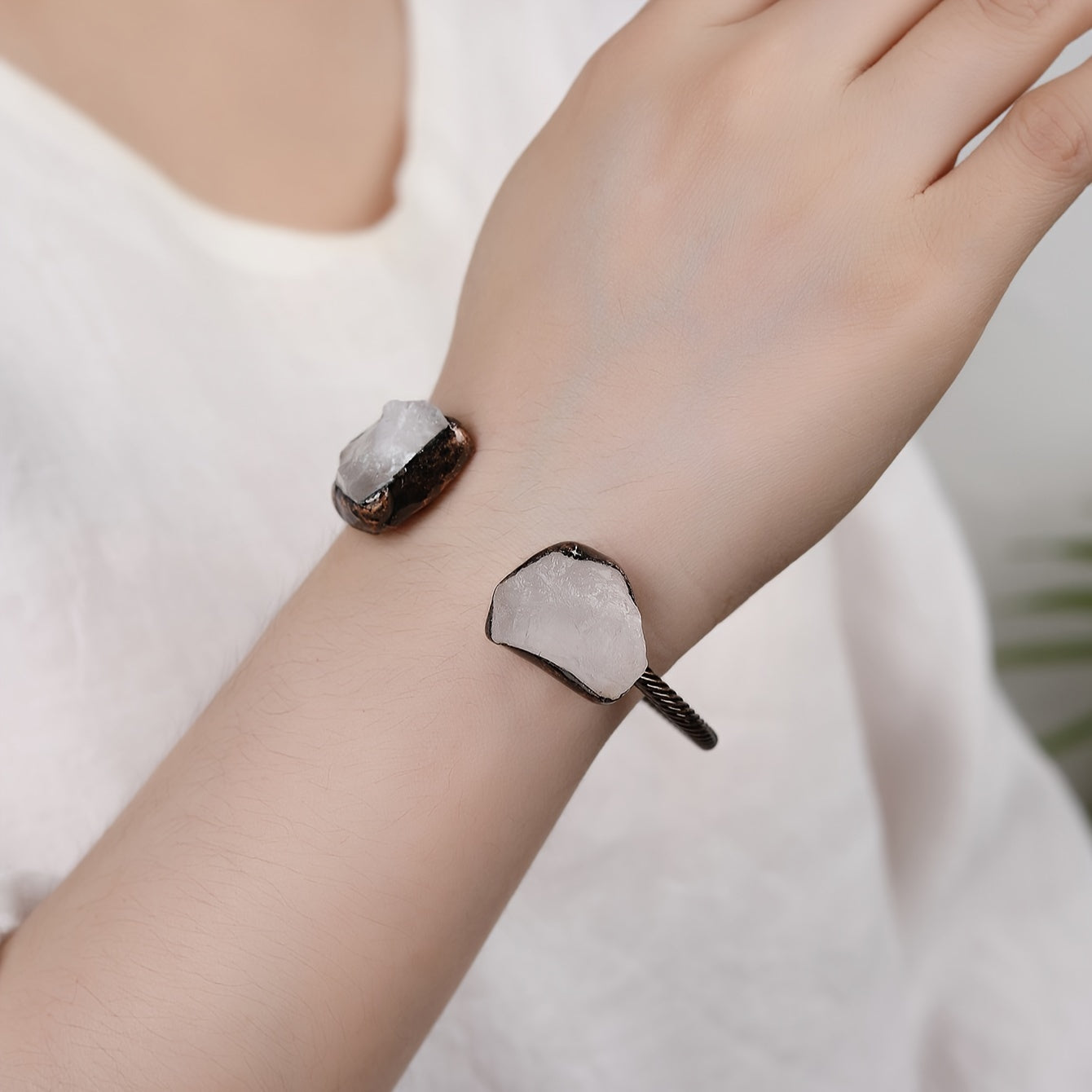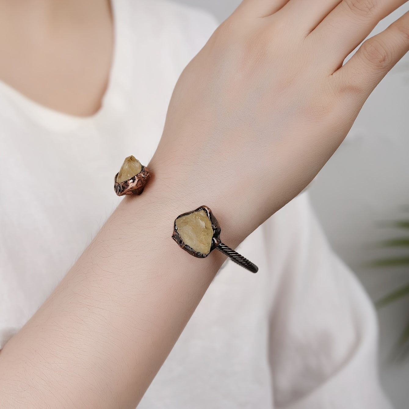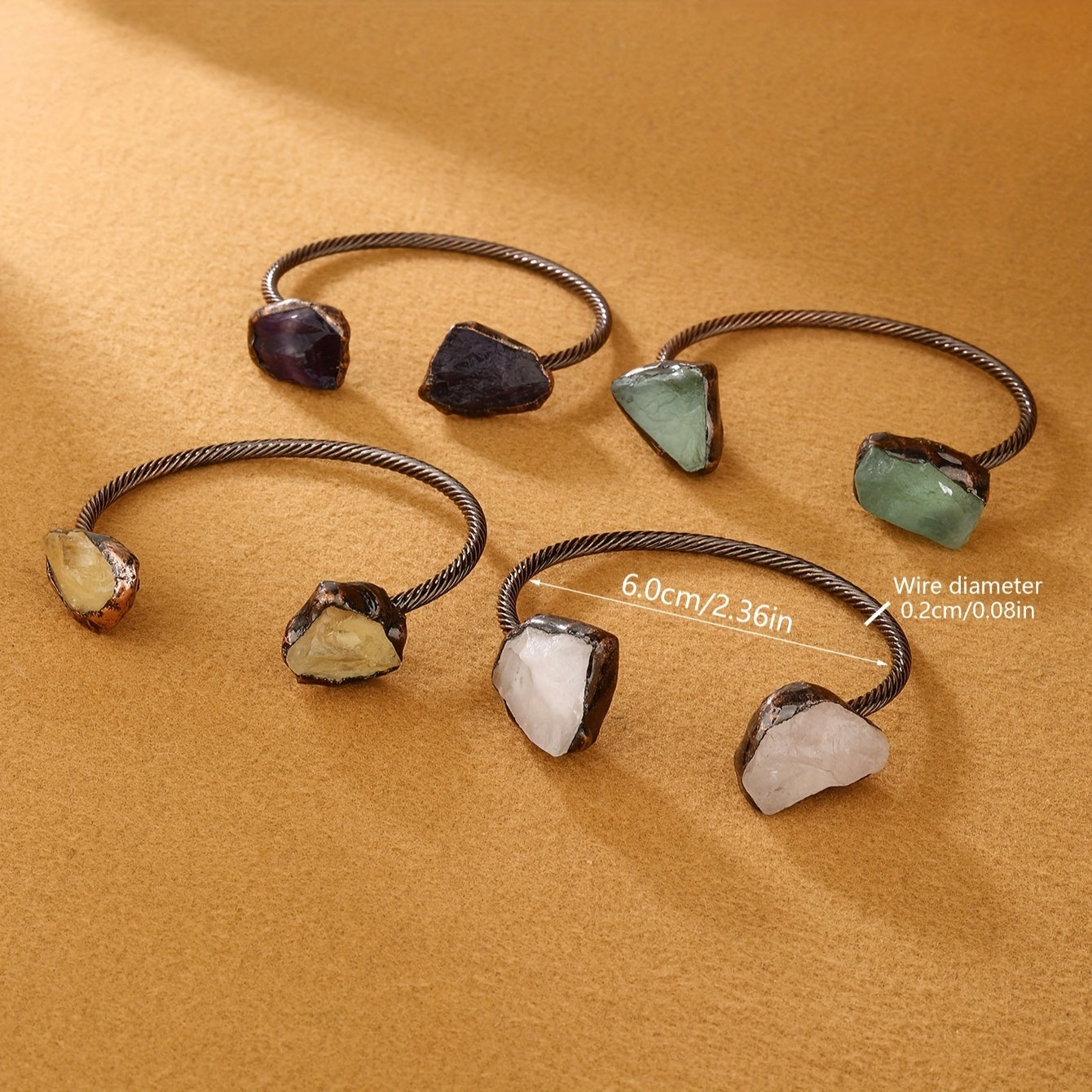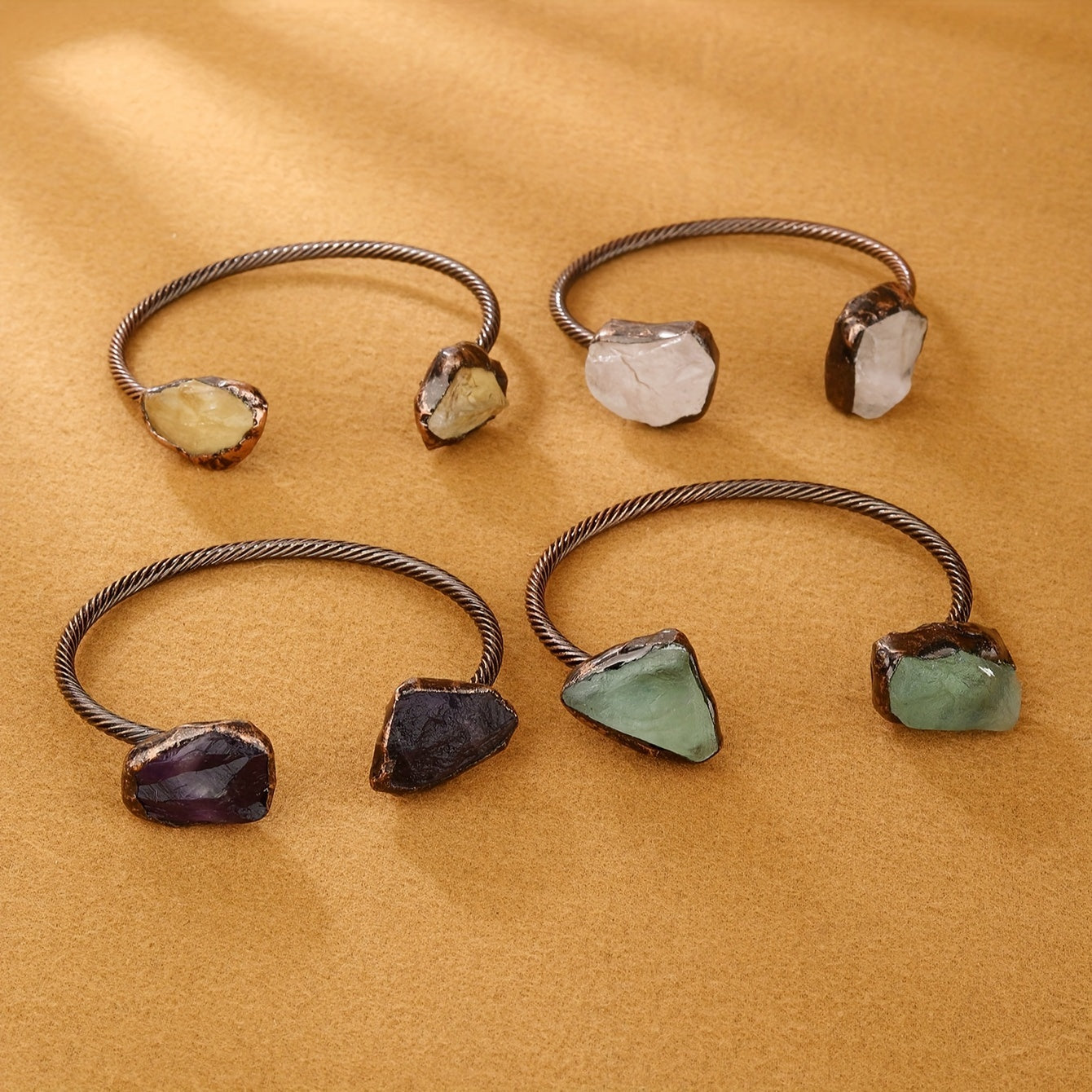 Vintage Bohemian Copper Bracelet with Amethyst Citrine and White Crystals for Women