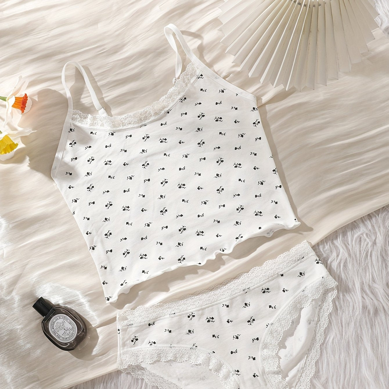 Nylon Lingerie Set with Lace Trim and High Waist for Women