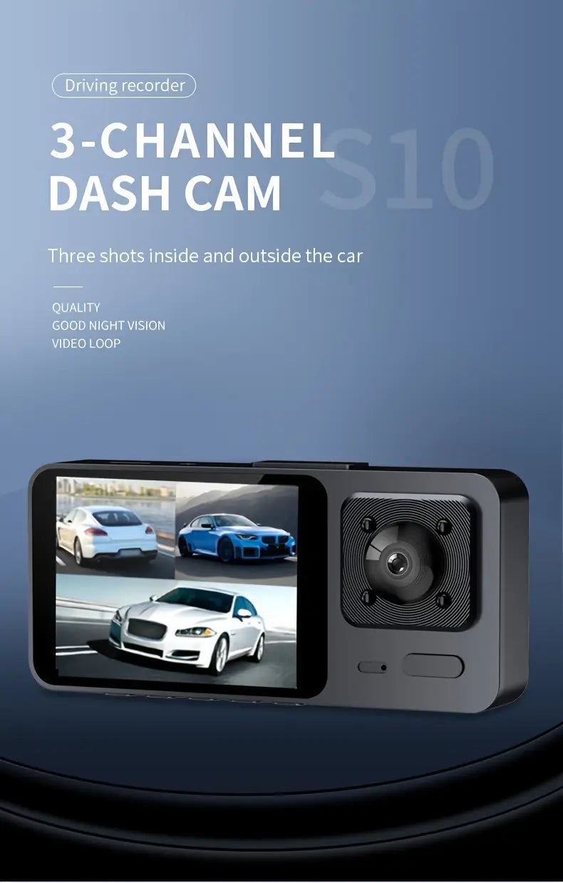 Triple 1080P Dash Cam for Car Front Inside Infrared Night Vision