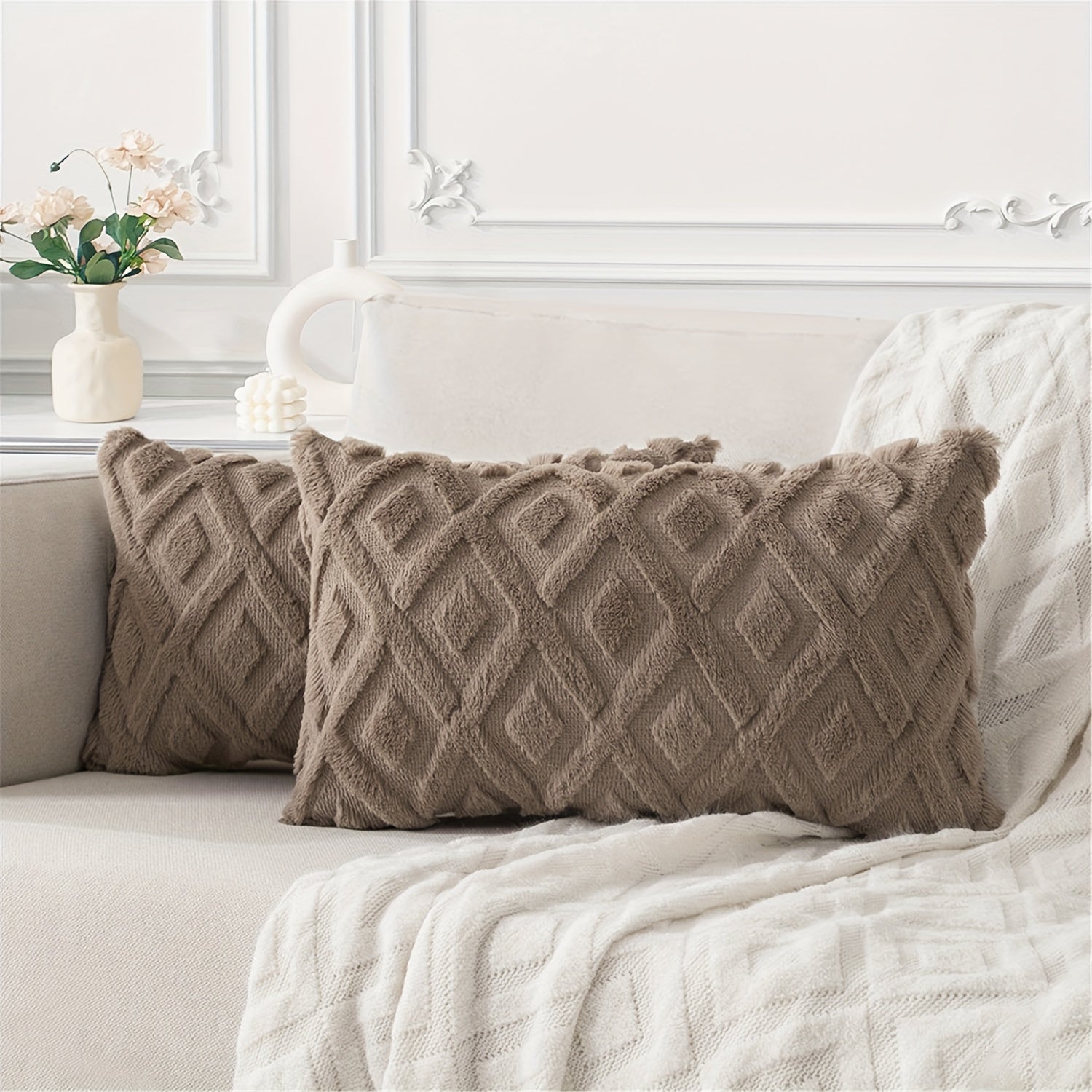 Beige Faux Wool Throw Pillow Covers 18x18 Inches for Couch Sofa Decor
