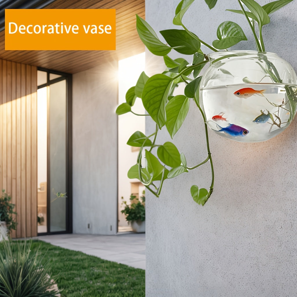 Glass Wall Planters with Fish Tank Feature Set of 2 Modern Indoor Outdoor Decor
