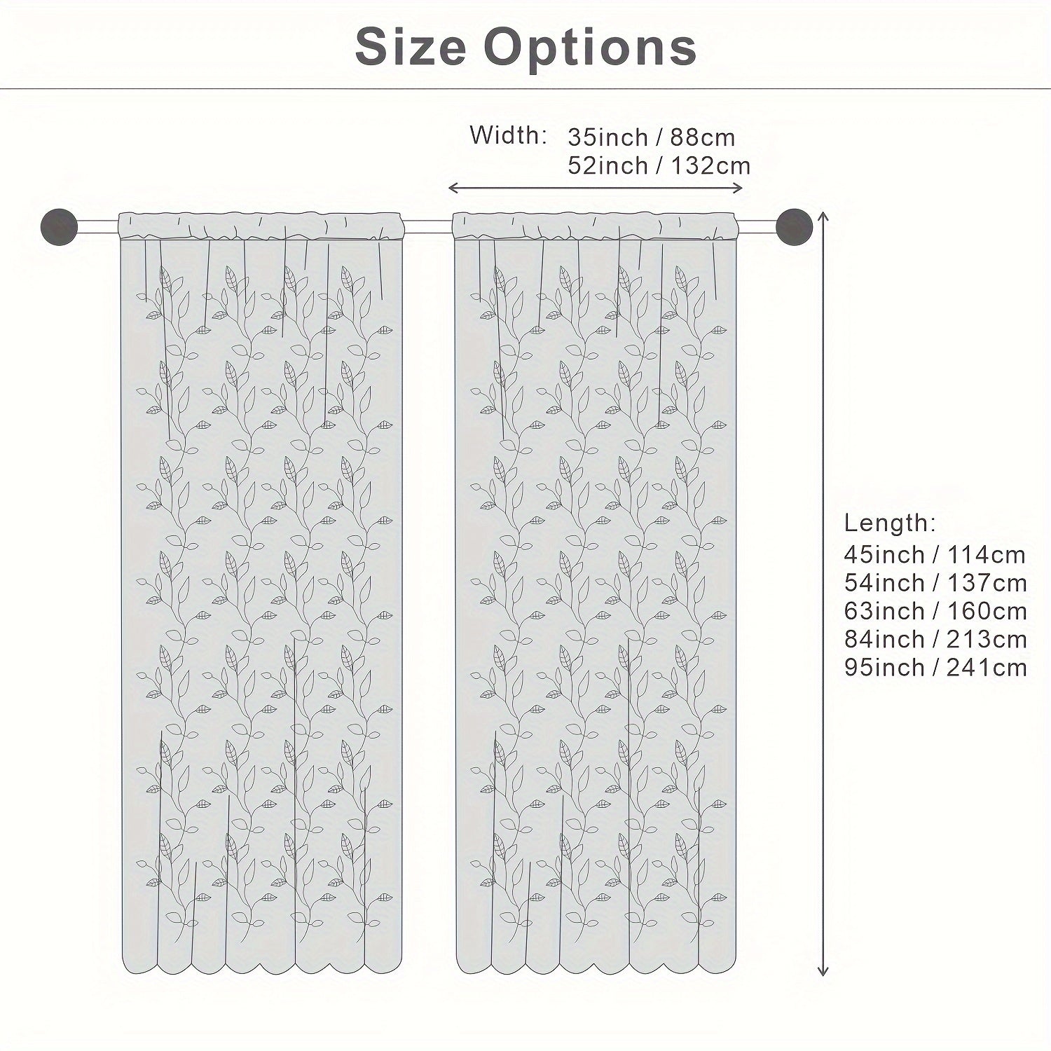 Two Pieces Sheer Curtains with Embroidered Leaf Pattern, Rod Pocket, Polyester, for Bedroom Living Room Kitchen