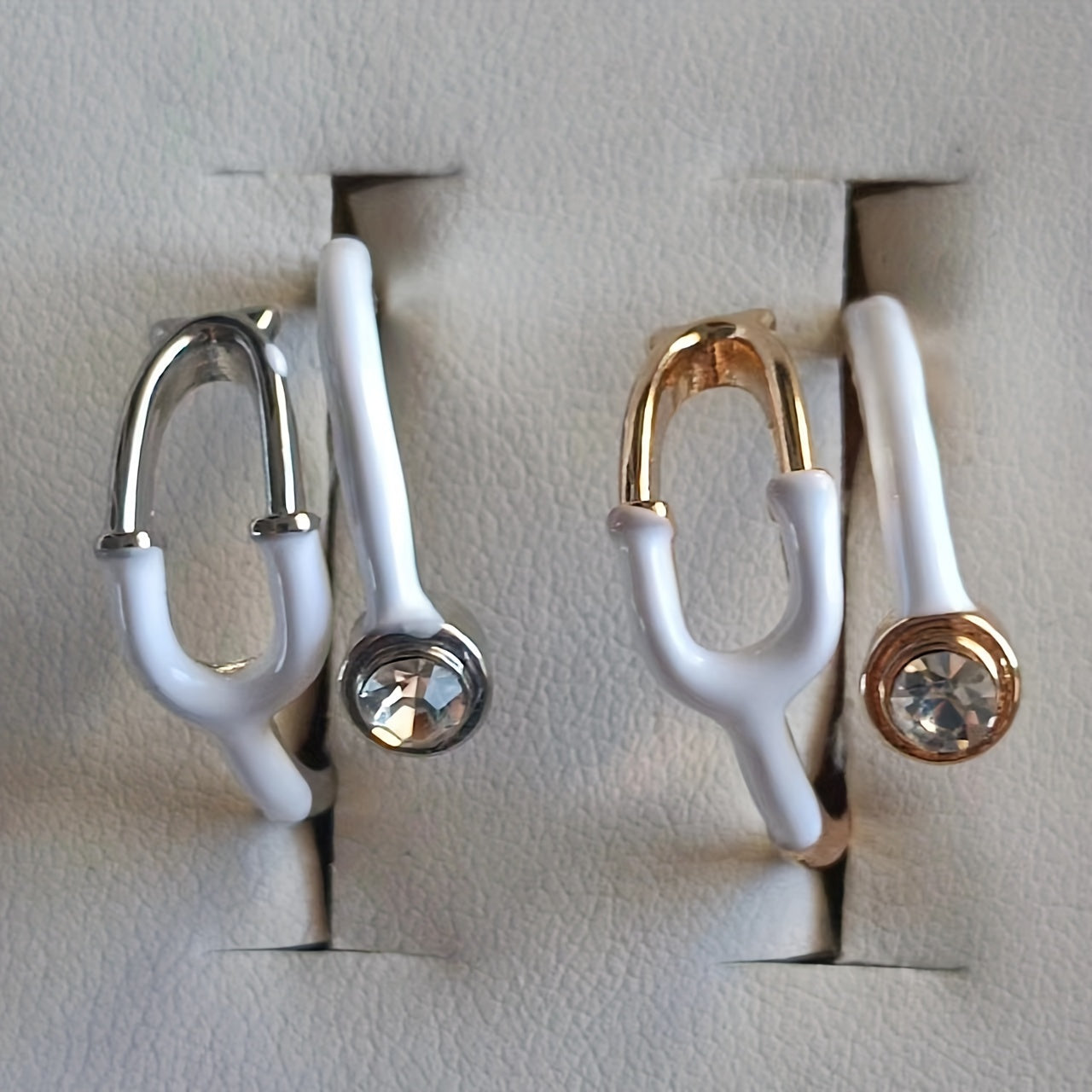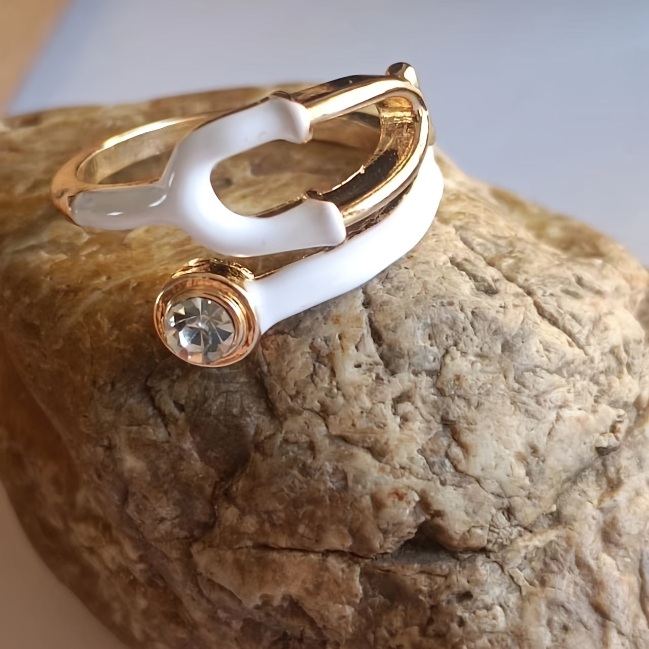 Men's Medical Jewelry Stethoscope Ring White and Gold Alloy Stylish Gift