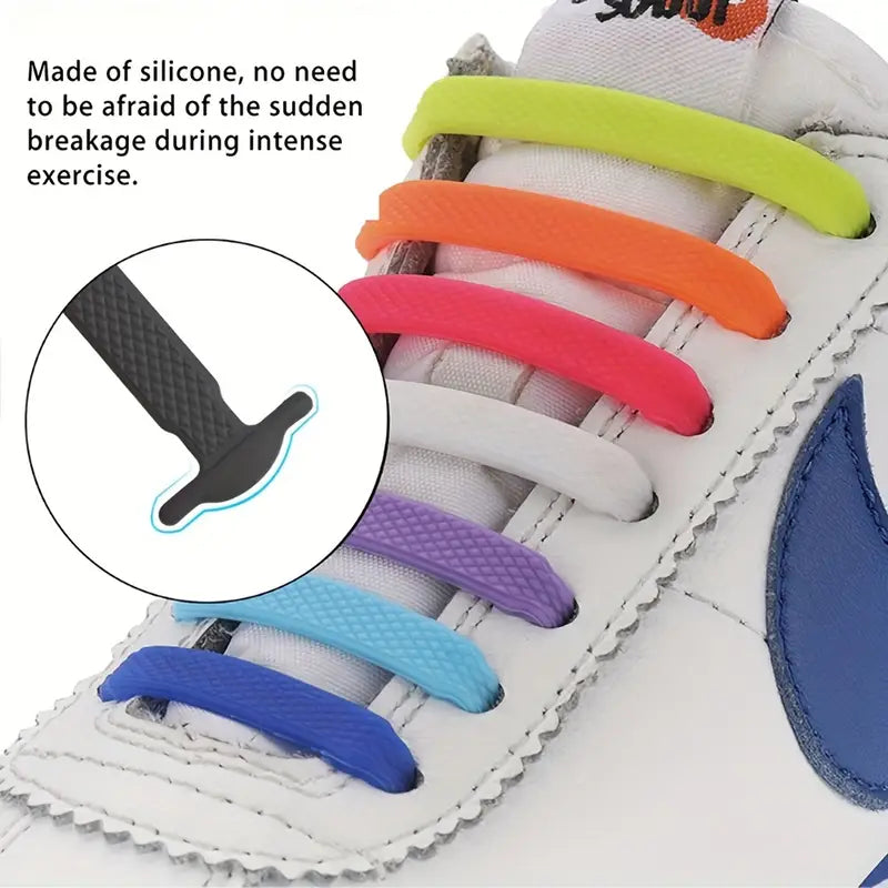 Unisex Silicone No-Tie Shoelaces Adjustable Durable 16 Pack Multiple Colors