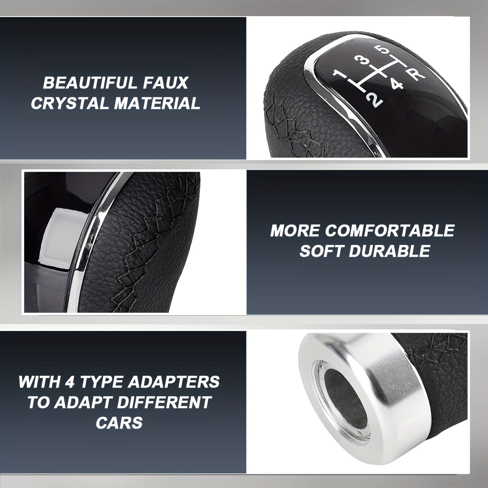 Universal Aluminum Alloy and PU Leather Gear Shifter Head Replacement with Adapters