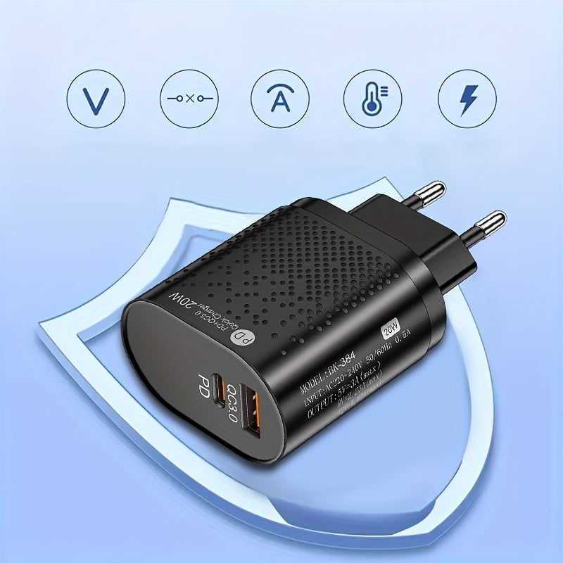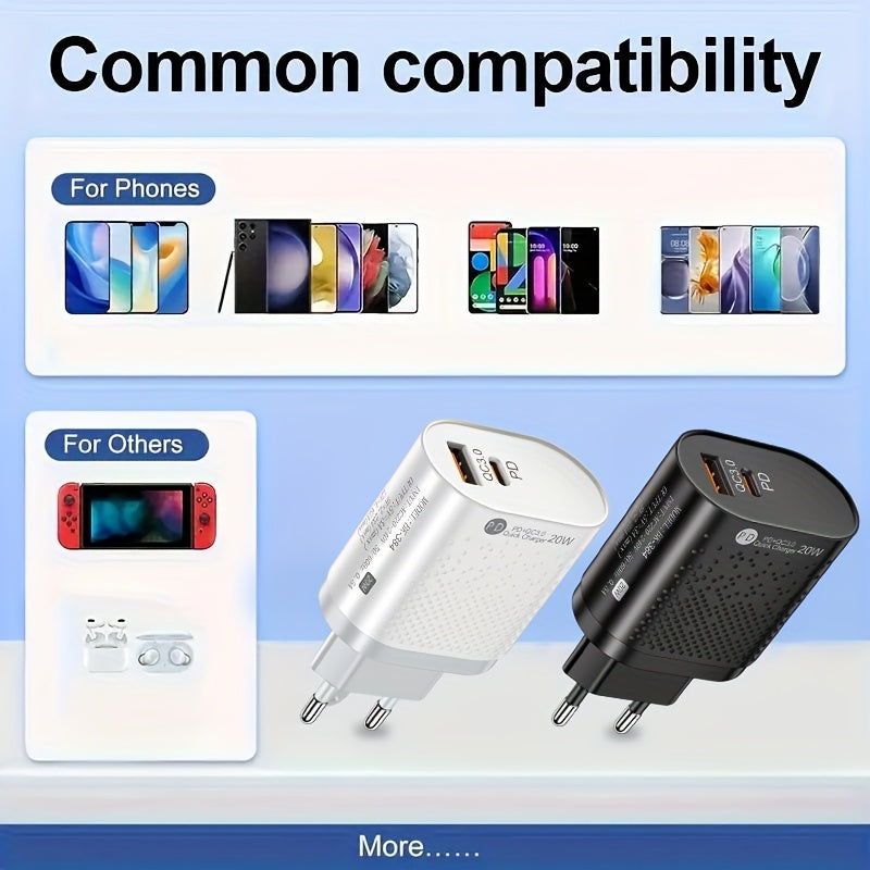 Universal USB-C Fast Wall Charger Dual Port Power Adapter White Black