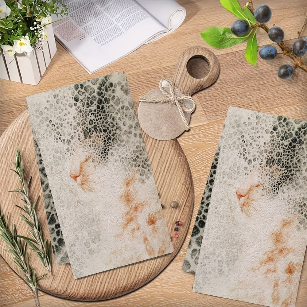 Set of 2 Ultra-Soft Kitten Spot Pattern Hand Towels 40x60cm Absorbent Machine Washable