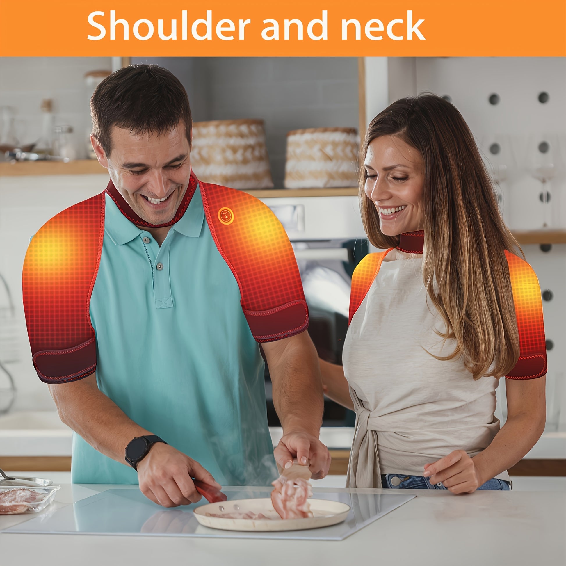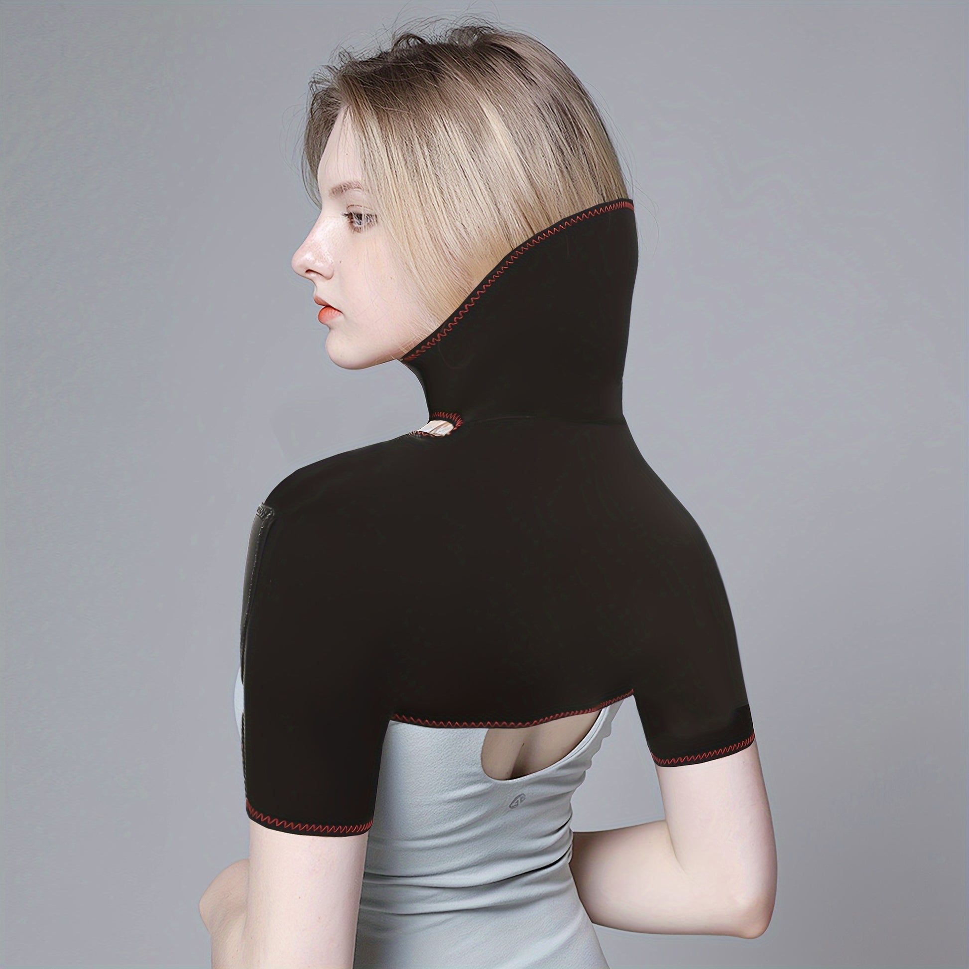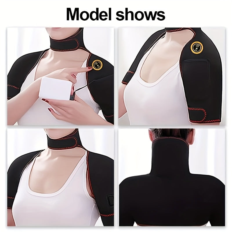 Unisex USB Heated Neck and Shoulder Wrap Black Red Trim Adjustable Temperature