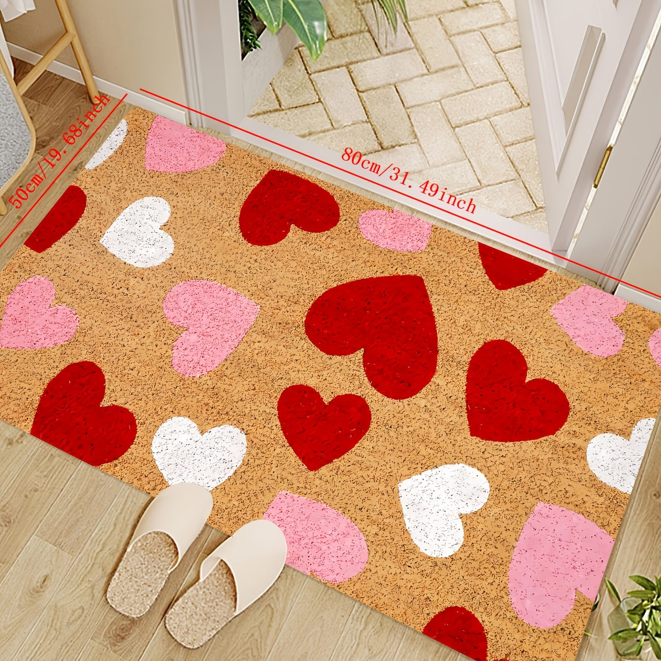 Valentine's Day Heart Door Mat Indoor Outdoor Stain-Resistant Polyester Rug