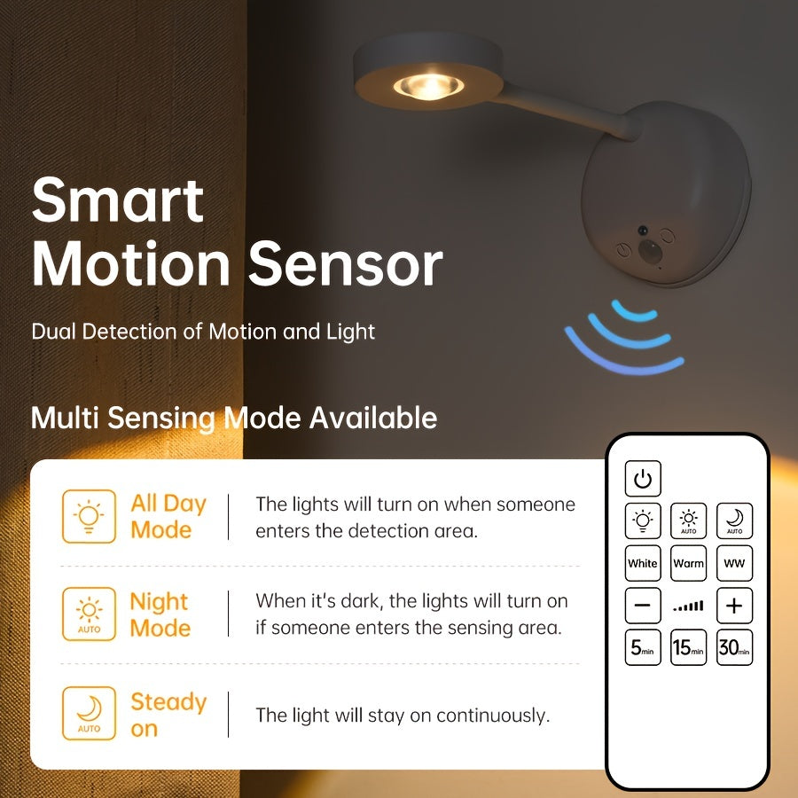 Wireless Motion Sensor Light with Remote Control USB Rechargeable Adjustable Brightness and Timer