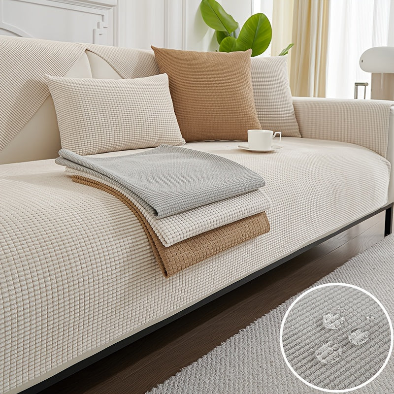 Water-Resistant Velvet Sofa Cover for 1-4 Seat L-Shaped Sofas Pet-Friendly Non-Slip Machine Washable Gray Textured Fabric
