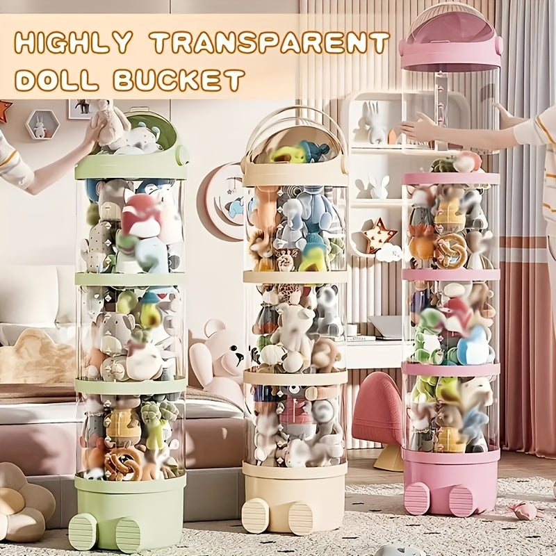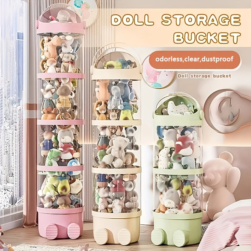 Waterproof Plastic Storage Bin for Dolls and Toys, Round, Organizing Container