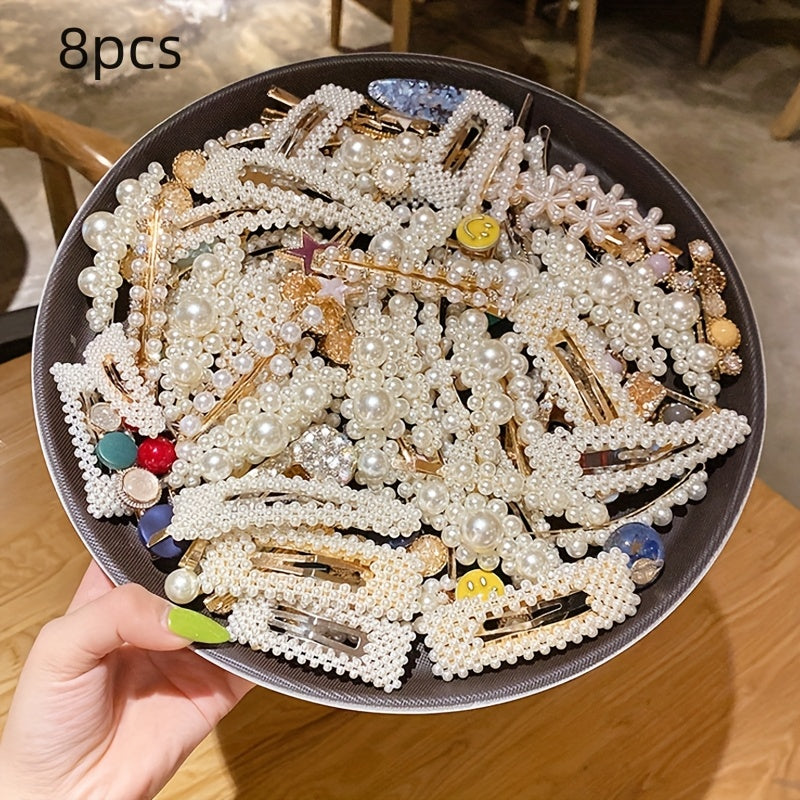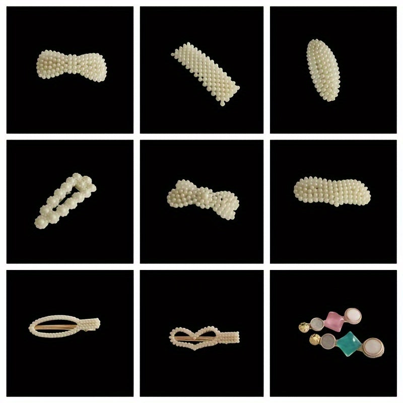 Wholesale French Style Pearl Hairpins Set for Women, Bow Tie Design, Plastic, Mixed Colors