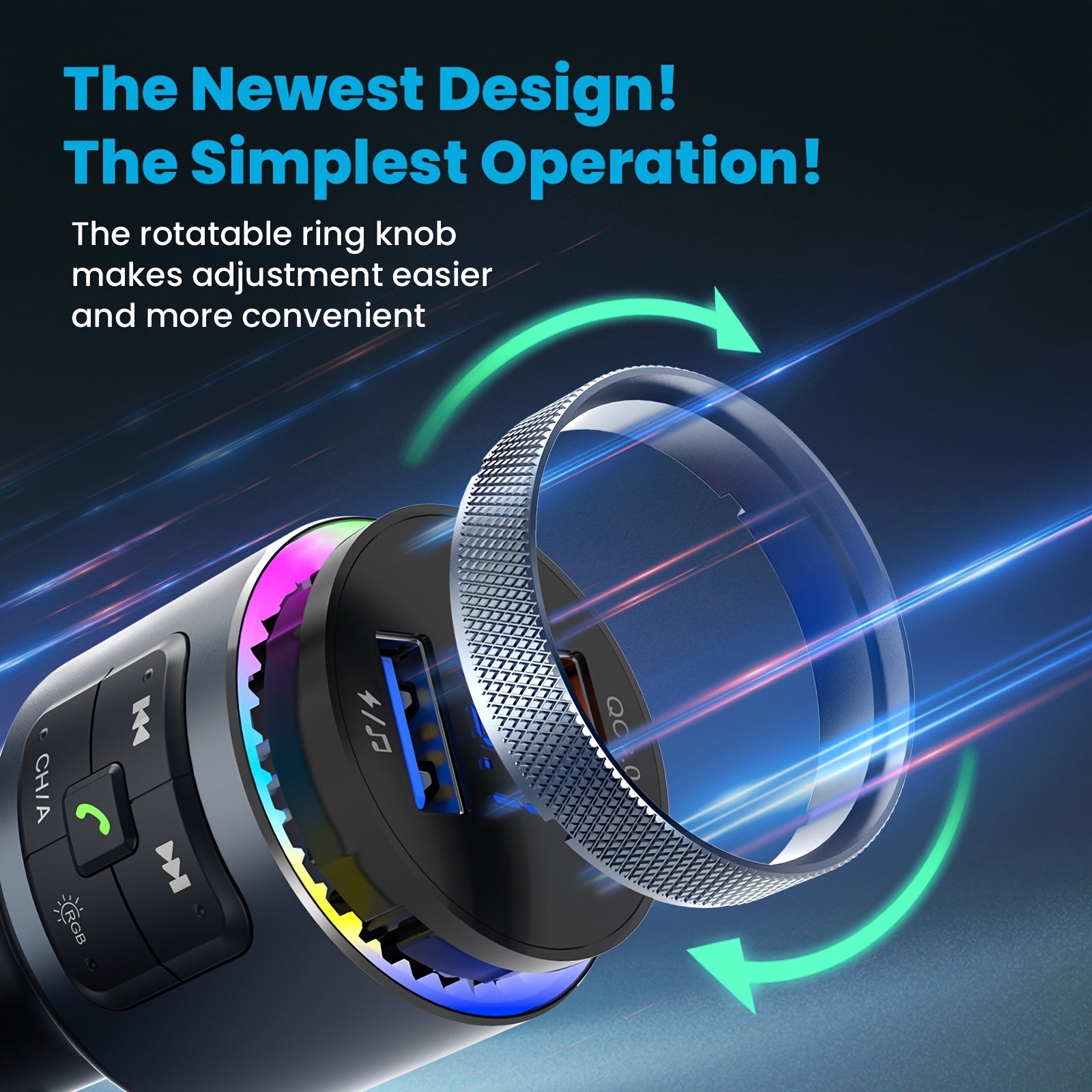 Wireless FM Transmitter Car Adapter with QC3.0 Hands-Free Calls LED Backlit
