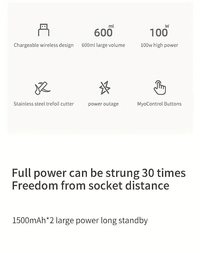 Wireless meat grinder USB charging 600ml multi-function electric food processor for juicing ice crushing meat grinding