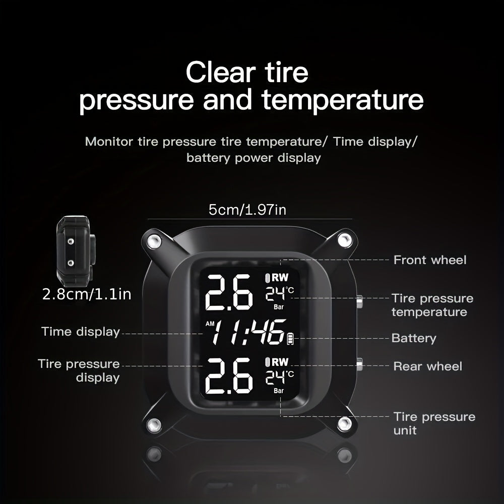 Wireless Motorcycle Tire Pressure Monitoring System with LCD Display and External Sensors