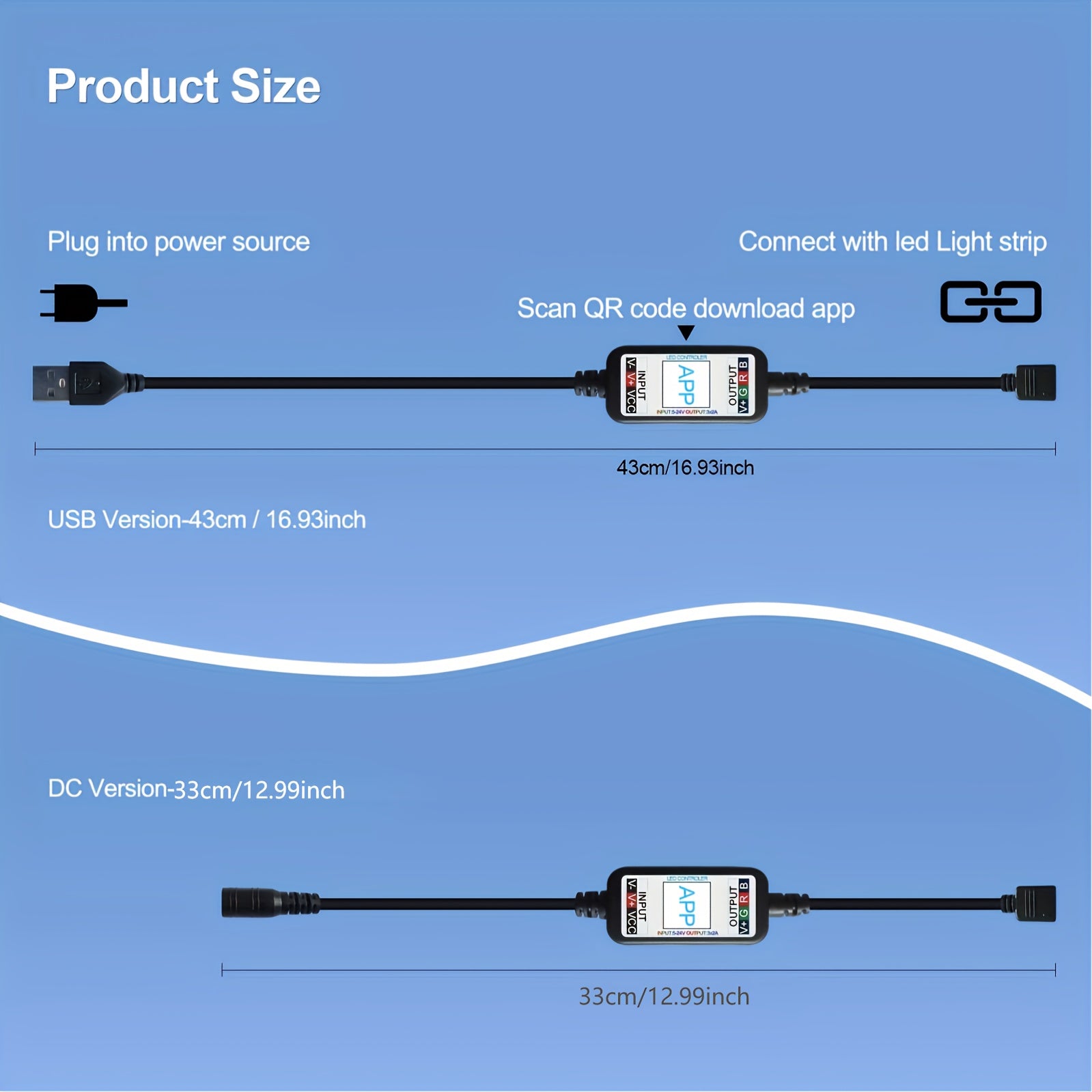 Wireless RGB LED Strip Controller App Control USB Powered Compatible with 5V-24V DC Lights Music Sync