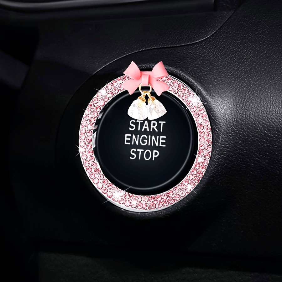 Women Alloy Crystal Car Ignition Ring with Rhinestone Bow for Start Engine