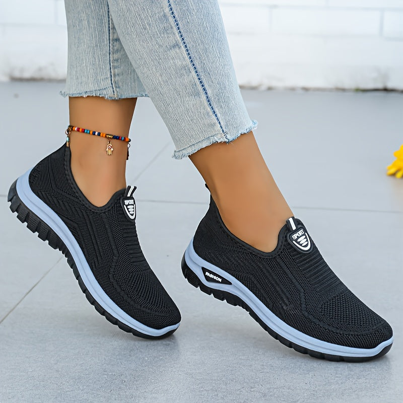 Women Plus Size Breathable Slip-On Sneakers Casual Walking Shoes Black Blue