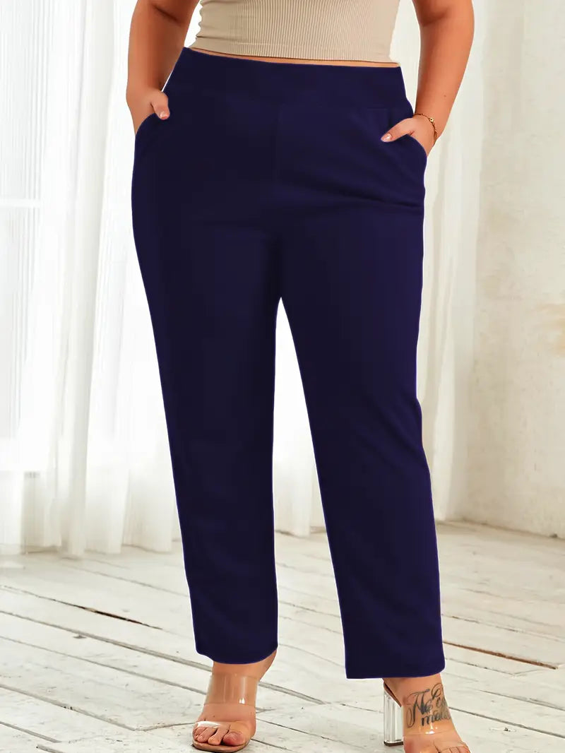 Women Plus Size Stretch Straight-Leg Pants Green Mid-Rise Casual
