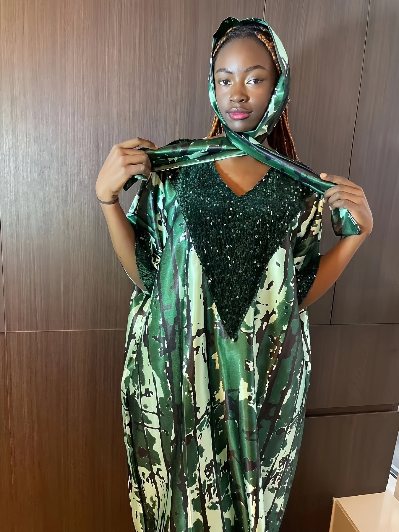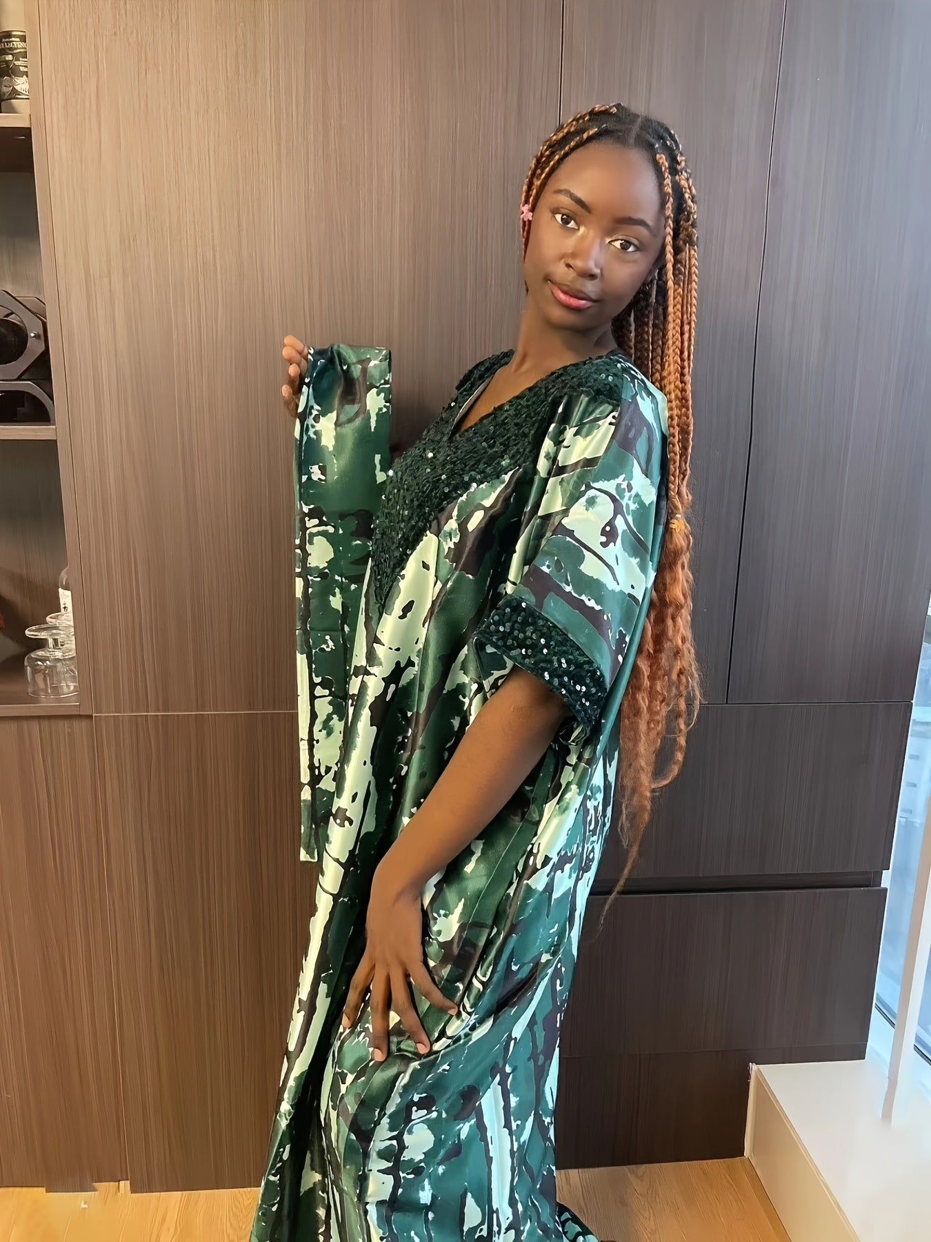 Women Plus Size V-Neck Kaftan Dress with Contrast Collar and Batwing Sleeves