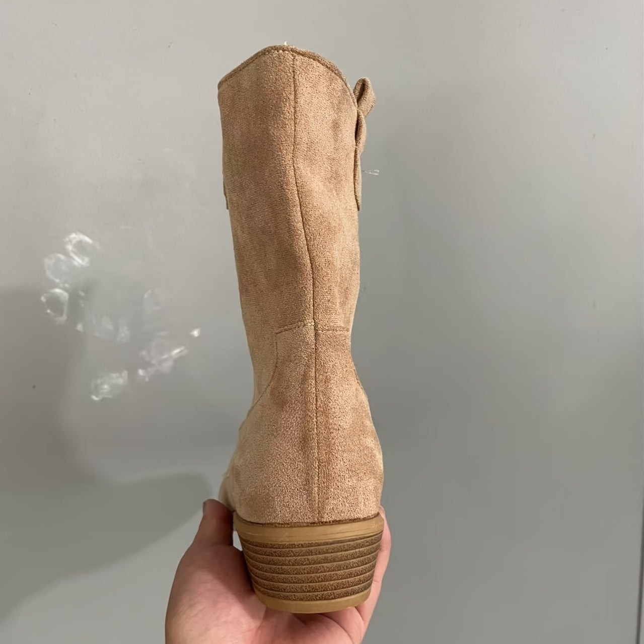 Women's Beige Slip-On Ankle Boots with Pointed Toe and Block Heel