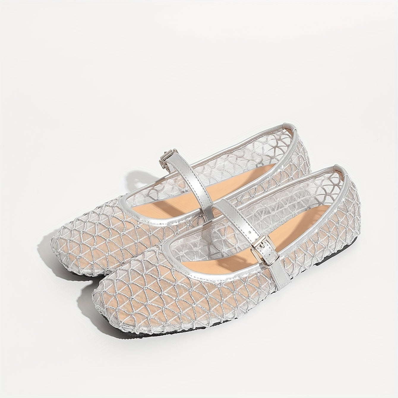 Women's Breathable Mesh Mary Jane Flats Summer Ballet Shoes with Square Toe